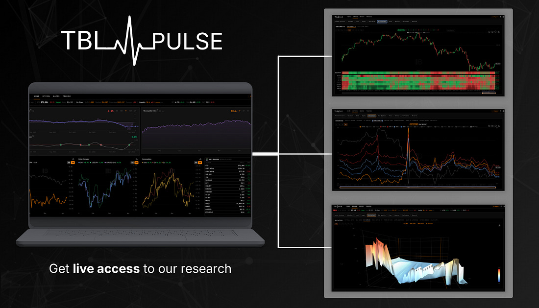 TBL Pulse brings liquidity, positioning, and flows together in real time, helping you stay ahead of how the market is shifting. If you’ve been reading our work and want to go one layer deeper, this is how. Get full access to TBL Pulse for $19/month. |