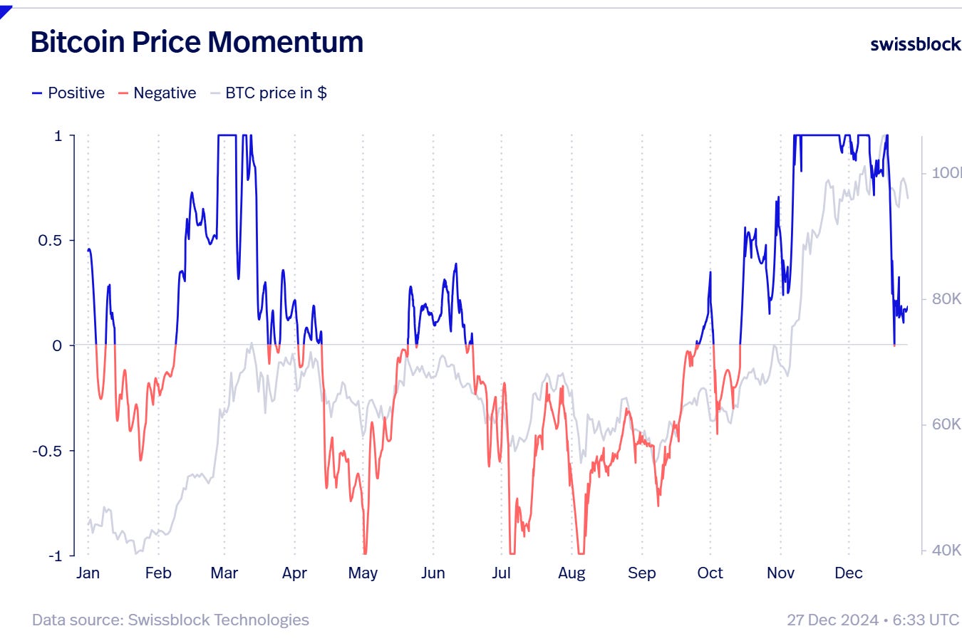 The price momentum has remained in bullish territory, though it is feeling the strain of low volume and liquidity. It appears to be hanging by a thread, but we have reasons to believe it will hold and rebound in the final days of the year and the first week of 2025.