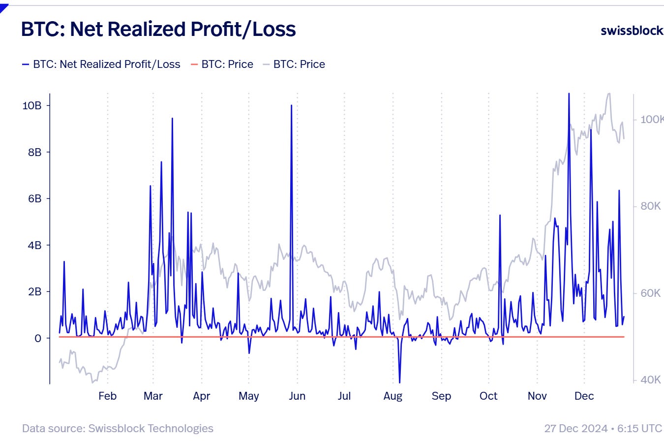 Profit-taking above $90K and near $100K has persisted among market participants (no surprise, as long-term holders continue to take profits). However, this selling pressure is gradually losing intensity. For price momentum to resume within the bullish territory, profit-taking must stabilize, and we need to avoid large volumes of selling that create spikes on the chart.