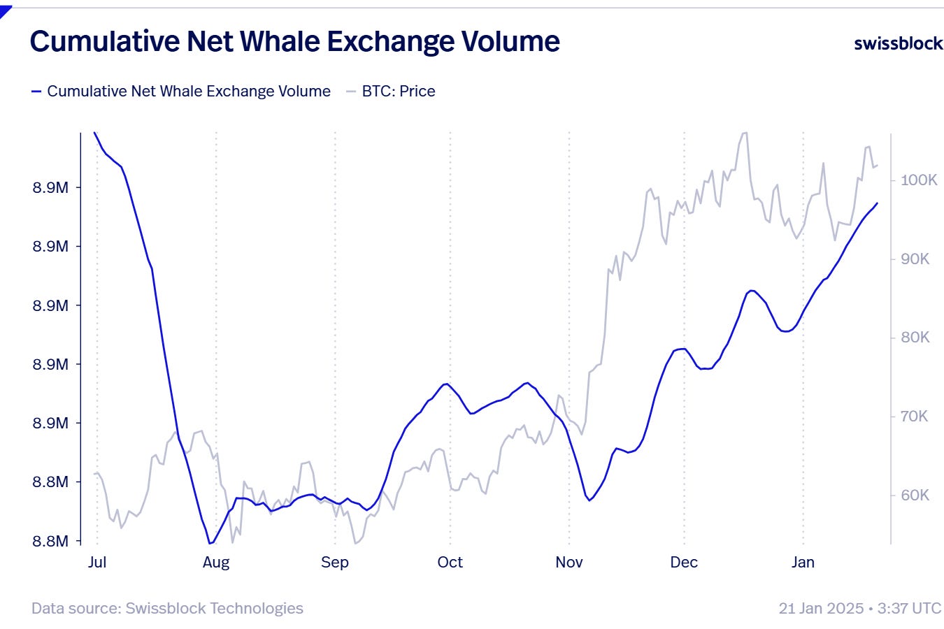 Cumulative Net Whale Exchange Volume.
