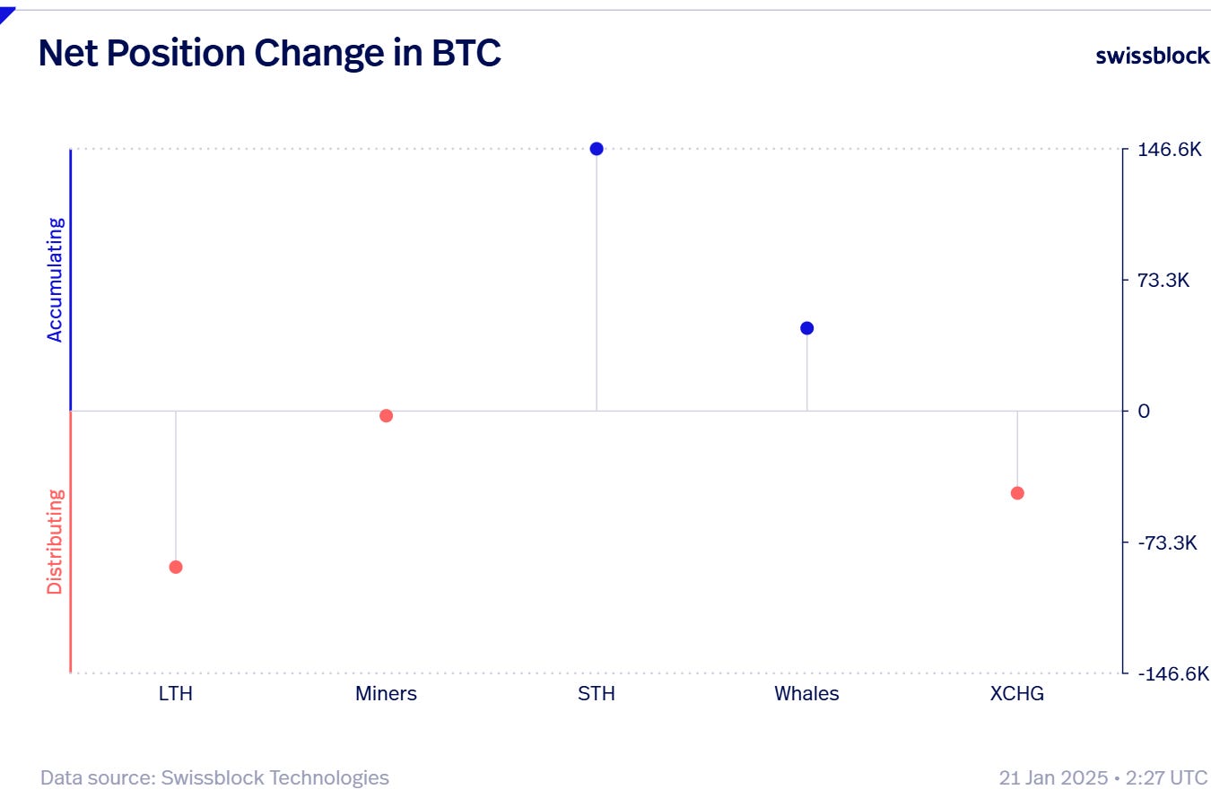 Whales: They continue to absorb the available BTC supply, maintaining their accumulation streak that began earlier this year. It remains to be seen if this trend will hold in the coming days, following the FOMO tied to Inauguration Day.