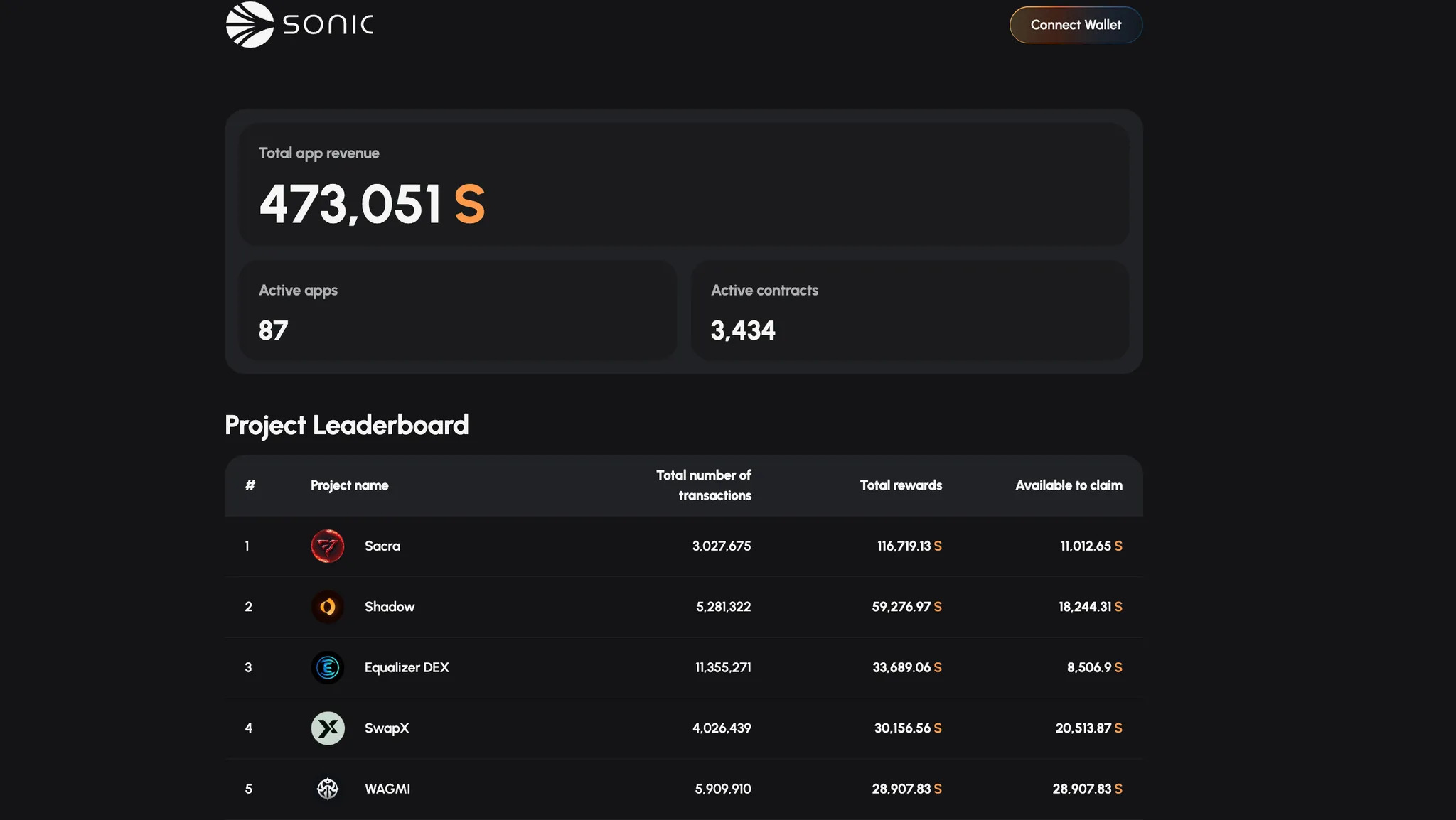 | And the kicker? Apps can use the rewards however they want—whether that's bootstrapping their user base, reinvesting into development, or even just paying themselves. No strings attached. | Source: Sonic Fee monetization While Sonic is still early, the program is already showing signs of traction—over 473,000 S tokens have been awarded so far, with the top 5 protocols raking in over 25,000 S tokens each. In a space where most ecosystems struggle to attract and retain developers, Sonic empowers developers to focus on what matters—shipping great products. Pair this with Sonic's ongoing 200 million S token airdrop; there's more than one reason to take a closer look at what's happening here. | |