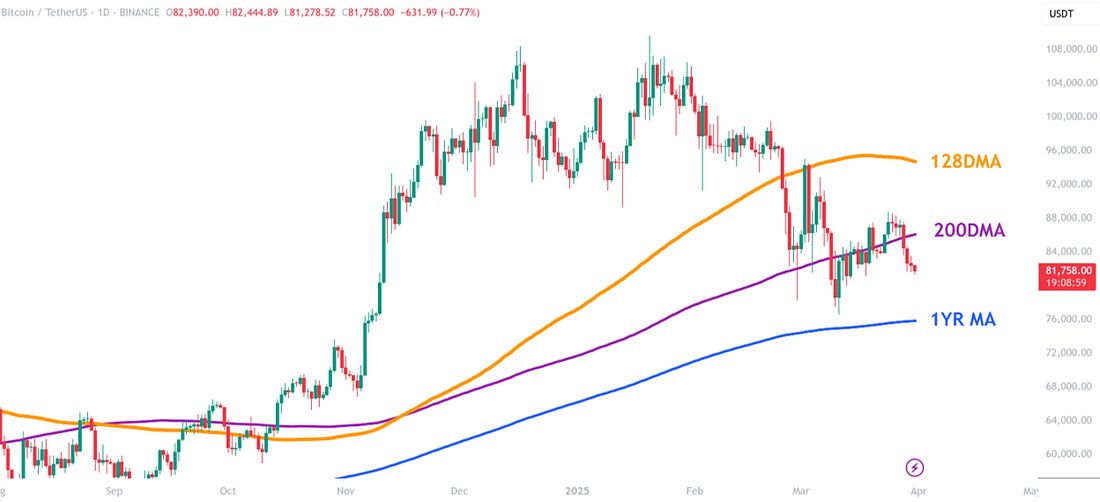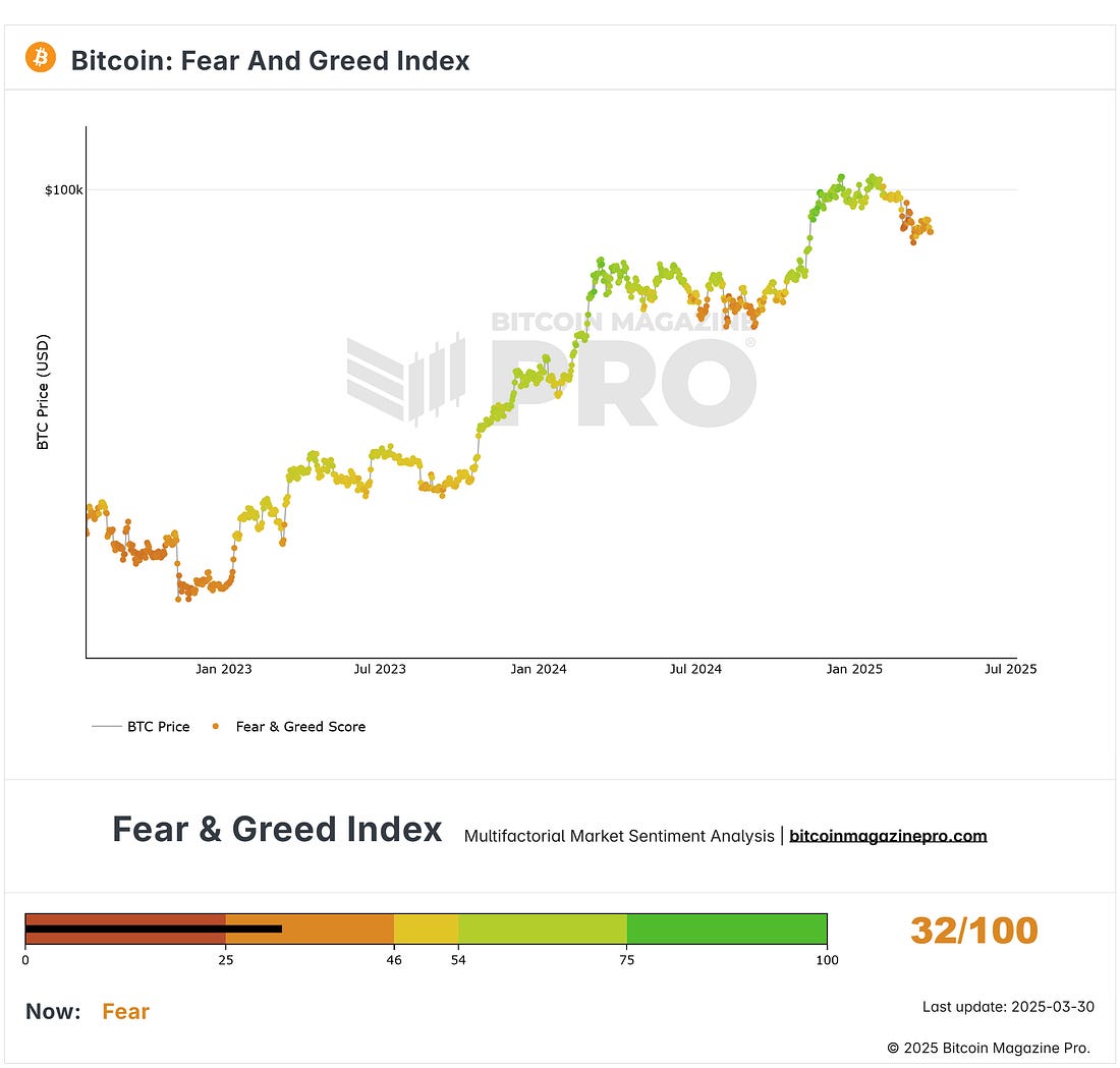 News Headlines Price Action After attempting a breakout above the 200-day moving average, BTC has tumbled back below it in recent days. Figure 1: BTC and its key bull market moving averages. If it fails to hold this level to make a higher low, then the next support area is the 1-year moving average, currently at $75,500. The recent months of sideways and then downwards price action are taking their toll on BTC historical price performance. Over the past year, BTC is now up +16.37%. Still an impressive return, but not the kind of returns many people expect in a bull market for Bitcoin. Figure 2: BTC performance over the past 12 months. The result is uncertainty and fear among many market participants who are questioning whether Bitcoin can rally higher. This is reflected in the Fear & Greed Index, currently stuck in the Fear zone with a score of just 32. Figure 3: Fear & Greed Index. The Big Story: MARA Massive Stock Sale to Buy More BTC Marathon Digital Holdings (MARA), one of the largest Bitcoin mining companies, has initiated a $2 billion at-the-market (ATM) stock offering to fund additional Bitcoin acquisitions and support general corporate purposes. This move follows a prior ATM offering that raised $1.4 billion, enabling MARA to increase its Bitcoin holdings from 13,726 BTC to 46,374 BTC. Already, Marathon Digital Holdings has the second largest holding of bitcoin on its balance sheet - second only to MicroStrategy. The Bitcoin Magazine Pro Treasury table shows the leading Public Companies holding Bitcoin on their balance sheet. Marathon Digital is consistently in the top 3 companies: Figure 4: Public Companies Treasury Holdings - Top 3. Riot Platforms, another Bitcoin mining company, is some distance behind Marathon, holding 18,692 bitcoin on its balance sheet. Marathon currently holds 0.22% of the total 21 million supply of bitcoin, with this latest announcement, that percentage will now significantly increase in the coming months. The ATM program involves collaboration with investment banks such as Barclays, BMO Capital Markets, BTIG, and Cantor Fitzgerald, who will facilitate the sale of MARA shares. MARA intends to use the net proceeds from this offering for general corporate purposes, including the acquisition of Bitcoin and working capital. The Bitcoin Magazine Pro Treasury Treemap shows the relative size of Bitcoin holdings that Marathon Digital currently has compared to other Public Companies holding bitcoin in the US (Blue), Canada (Green) and Rest of the World (Red). Figure 5: Bitcoin Treasury Treemap for Public Companies. Live Chart Review: Bitcoin Seasonality - April Figure 6: Bitcoin Seasonality - price performance by month. As we head into Q2 2025 with BTC struggling to perform in recent weeks, it is interesting to note how Bitcoin has performed by month since December 2010. While November has typically been a stellar month for Bitcoin, with an average performance of 43.74%, April is not too shabby either. Historically, it has averaged a return of 11.26% for Bitcoin. Let’s see if Bitcoin can match that monthly average in April 2025. Bitcoin Magazine ProFor more detailed Bitcoin analysis and to access advanced features like live charts, personalized indicator alerts, and in-depth industry reports, check out Bitcoin Magazine Pro. Make Smarter Decisions About Bitcoin. Join millions of investors who get clarity about Bitcoin using data analytics you can't get anywhere else. We don't just provide data for data's sake, we provide the metrics and tools that really matter. So you get to supercharge your insights, not your workload. Take the next step in your Bitcoin investing journey: