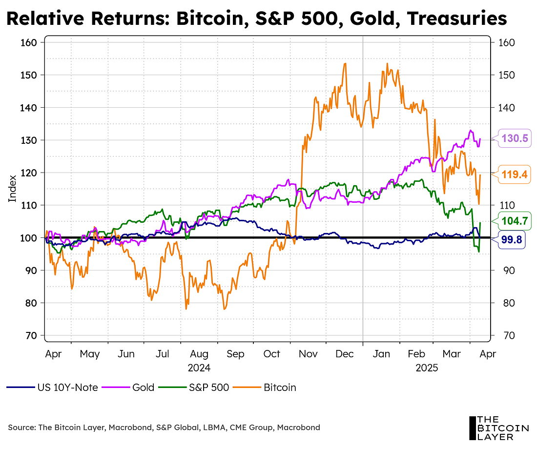 The introduction of volatility to the macro scene has upended bull markets across stocks and bitcoin, but how long will it last? Events of the past week since Liberation Day have caused a whipsaw in markets, and what we view as hysteria based on a misinterpretation of who is in charge. Not that volatility is unwarranted—a dislocation in Treasuries, which we will discuss more in this report, could have triggered a shift in messaging to single out China in the trade war. Trump said that 75 countries reached out to bring a peace offering, and he conceded a 90-day period to work out the terms. Treasury yields experienced record moves due to a combination of the highly leveraged “Treasury basis trade” and heightened volatility more broadly. Who was selling on Tuesday, and with what motivation, are questions we sit wondering but don’t have any tangible answers. Wednesday’s snap back in stocks and bitcoin was breathtaking but also a strong reminder that the entire fiat world is built upon thinner markets than you may have previously thought. Ten-year Treasuries went completely bidless yet are trading now right below the 4.33% area we’ve been watching for over a year. With all this volatility, we have to find an anchor for our analysis. It has officially become this speech by a friend of TBL, Steve Miran, who has delivered the White House’s official remarks on why this trade policy against China is taking place. It also outlines the concessions the White House is looking for from other countries, which are now experiencing a 90-day pause to get their acts together. In short, this is a global reordering, and it has begun. We have never taken a speech more seriously in terms of helping us understand the playbook and reasoning. Whether the Administration is successful in addressing the stated national emergency—trade deficits—and how long it might take are questions we’ll carry forward. Whether a success will require a global monetary reset is something we’re taking even more seriously because it pertains to bitcoin. The United States, in its pivot toward bitcoin, and in its discussion of Fort Knox, “unlocking the asset side” of the country’s balance sheet, and not to forget Bessent’s own desire to architect a new Bretton Woods (Mar a Lago) agreement, is setting up for something potentially big. Because Bretton Woods took place 81 years ago, making a projection that we get the next monetary reset in the next 4 years is bold, but we are readying our framework for this idea. This matters a lot for holders of bitcoin, as it puts bitcoin on a trajectory fit for a $20 trillion asset, like gold is today. In the meantime, we focus on the zoomed-in nature of TBL Liquidity and its components because that is what drives and will continue to drive bitcoin’s price action in the shorter term.
