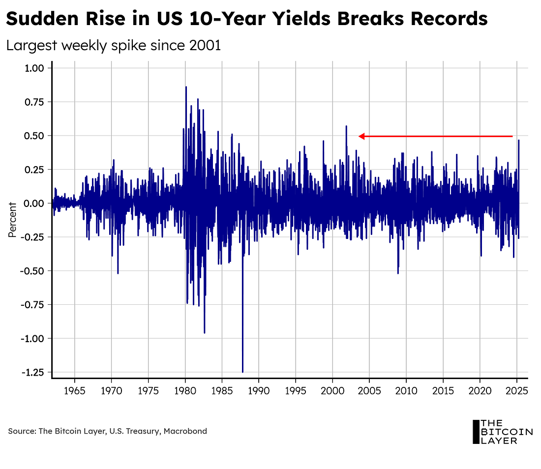 Dear Readers, This week’s market action fell short of typical Trump-Era movements, something we are not used to since 2025 started. After the most recent test of a five-year upward-trending support line in the S&P 500… …which, when compared to 2022’s bear market, has proven more vicious, reaching a 20% downturn months faster than 2022’s drawdown… …equities have managed to remain above that support line. More pain will arise if we continue to see bond market volatility like the episode seen a couple of weeks ago: In today’s article, we will analyze: