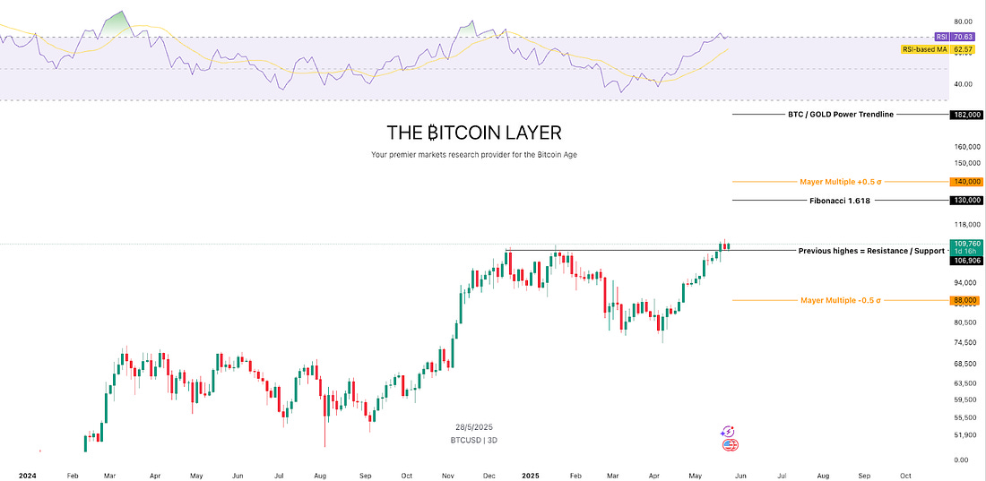 As an initial guideline, we anticipate continued orderly price action similar to what we’ve observed over the past two years, provided the price remains below the BTC/GOLD Power Trendline. An orderly scenario would see the price reaching between $140,000 and $180,000, followed by consolidation phases with pullbacks around the 20% to 30% range.