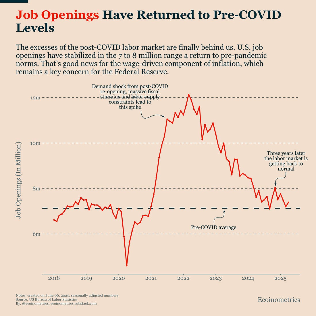That combination caused job openings to spike to record highs. And with it came rising wage pressure, as companies competed more aggressively for workers. Those higher wages fed into core inflation, especially in service sectors where labor costs are sticky. Wage inflation tends to be persistent. When job openings are high, firms raise pay to attract and retain workers. Those costs get passed on to consumers, fueling core inflation. Now that the labor market is less overheated, those inflationary pressures should ease. It doesn’t mean inflation will fall back to 2% overnight but it does remove one of the more structural upward forces. And that’s timely, because the Fed is still clearly concerned about inflation. We saw that in last month’s FOMC minutes, and it’s reflected in our Fed Communication Index, which remained firmly hawkish. At the same time, there’s a new wildcard: U.S. tariff policy. The Fed can’t control that, but new tariffs could easily offset progress made on the labor front by pushing up goods prices and re-accelerating inflation. So the tug-of-war is this: a softening labor market helps dis-inflate, while trade policy could reflate. The balance of those forces will shape macro conditions for the rest of the year. For Bitcoin investors, this matters. If disinflation resumes and the Fed regains confidence, that creates room for rate cuts or a more dovish tone, both of which tend to support risk assets and Bitcoin. The opposite is true if tariffs spark a new wave of inflation. That's it for today. Thanks for reading. Cheers, Nick P.S. Every week, our team conducts extensive research analyzing market data, tracking emerging trends, and creating professional-grade charts and analysis. Our mission: Deliver actionable macro and Bitcoin insights that help institutional investors and financial advisors make better-informed decisions. Ready for institutional-grade research that puts you ahead of the market? Click below to access our premium insights. You're currently a free subscriber to Ecoinometrics. For the full experience, upgrade your subscription. |