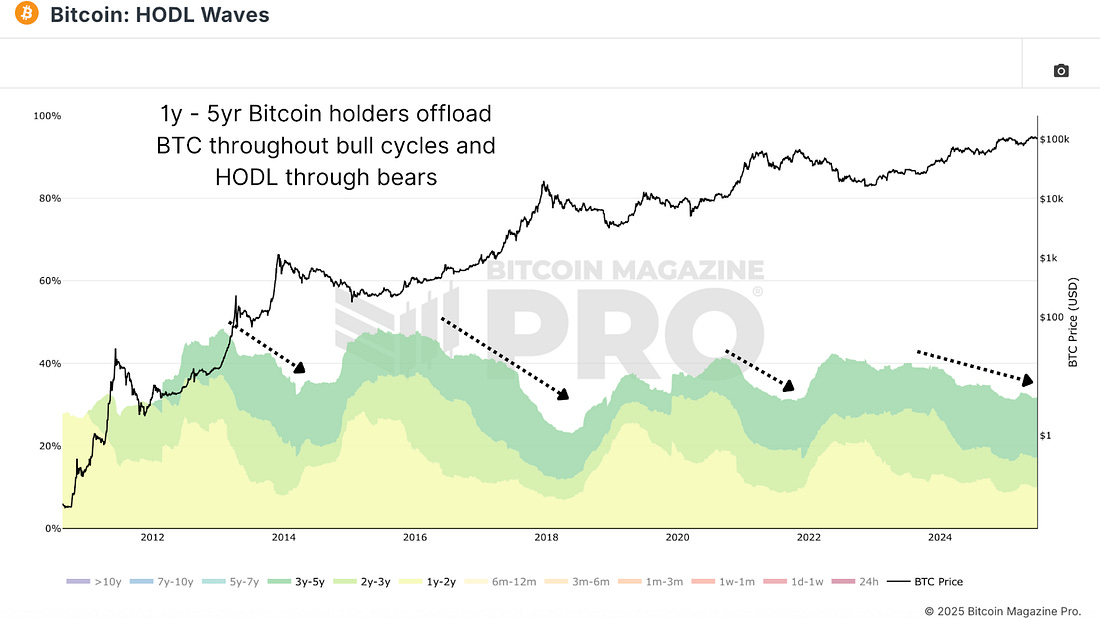 If Institutions Are Buying Why Isn’t Bitcoin Going UpETF and Treasury Buying: Why Bitcoin’s Price Isn’t SoaringBitcoin ETF inflows and institutional purchases continue to climb, yet many investors are puzzled by the muted price action. With billions flowing into BTC, why aren’t we seeing the price explode to new highs? The reality is more nuanced than it first appears. ETF InflowsLooking at the ETF cumulative inflows chart (excluding GBTC outflows), it’s clear that demand from institutional players has been robust. Since the most recent pullback in late March, net ETF inflows have climbed from roughly 527,000 BTC to over 630,000 BTC, an increase of around 100,000 BTC in under 3 months. These are significant numbers, yet the price has largely mainly drifted sideways since the start of 2025. Figure 1: The ETFs have had ~100,000 BTC of net inflows in the past quarter. It’s important to remember that not all ETF flows represent “institutional” buying in the purest sense. Many ETF purchases come from client allocations, for example, family offices or high-net-worth individuals using platforms like BlackRock. Still, these flows matter, and the steady accumulation is a positive driver for long-term supply and demand dynamics. Treasury BuyingComplementing ETF inflows, corporate treasury buying has also been strong, with (Micro)Strategy leading the charge. MSTR alone have seen their holdings have jumped from roughly 528,000 BTC to over 592,000 BTC in this year alone. Across all treasury companies tracked, total holdings now exceed 823,000 BTC, representing an astounding $86 billion in value. Figure 2: Companies like Strategy have accumulated billion of dollars of BTC in recent months. Despite this, many market participants feel underwhelmed by price action compared to prior cycles. But we must contextualize expectations: the BTC market cap is now in the multi-trillion-dollar range. The sheer scale of capital required to drive exponential moves today dwarfs previous cycles. Comparing this cycle to the 10x returns of earlier eras isn’t realistic. In truth, BTC has more than doubled from $40K at the time of ETF launch to recent levels above $110K, a still monumental achievement for a maturing asset class. Supply OverhangTo understand why prices haven’t surged even further, we must examine selling behavior. By analyzing HODL Waves data for 1-5 year bands, we can quantify long-term holder profit-taking. Over the past three months, more than 240,000 BTC from these older bands has been distributed to the market, nearly a quarter-million BTC in net outflows. Figure 3: Over 240,000 BTC has been distributed by 1y - 5y holders in recent months. This selling has largely counterbalanced institutional accumulation. Given that daily miner issuance still adds another ~450 BTC to the market, we see why price has struggled to break higher: the market is in a state of supply-demand equilibrium. Meanwhile, open interest on BTC derivatives markets has exploded. From under $5B less than 3 years ago to over $25B today. Many new participants prefer are opting to trade “paper BTC” on derivatives rather than buying spot BTC, which reduces the positive influence on price of increased market participants. Figure 4: Over 240,000 BTC has been distributed by 1y - 5y holders in recent months. Bullish ShiftsThere is however now reason for optimism. Long-term holder selling is now decelerating, with recent net outflows falling below 1,000 BTC per day, a substantial reduction from previous monthly averages just weeks ago. If institutional inflows remain steady and retail demand starts to awaken, even at levels seen earlier this cycle rather than extreme prior peaks, we could easily see another powerful leg higher. Past instances show that when retail flows surge from these levels, BTC can double in price within months. Figure 5: Long-term holder profit taking has nearly reduced to 0 in recent weeks. ConclusionETF inflows and treasury purchases are pouring billions of dollars into Bitcoin, but the muted price reaction makes perfect sense when viewed through the lens of supply and demand. Heavy profit-taking by long-term holders and growing derivatives speculation have balanced out the inflows. As long-term selling subsides and institutional buying continues, the stage is being set for the next bullish impulse. Whether we see the euphoric retail mania of prior cycles remains to be seen, but even modest retail inflows combined with current institutional demand could drive prices sharply higher sooner rather than later. For a more in-depth look into this topic, check out a recent YouTube video here: Why Isn’t Bitcoin Going Up If Institutions Are Buying? Matt Crosby Lead Analyst - Bitcoin Magazine Pro Bitcoin Magazine ProFor more detailed Bitcoin analysis and to access advanced features like live charts, personalized indicator alerts, and in-depth industry reports, check out Bitcoin Magazine Pro. Make Smarter Decisions About Bitcoin. Join millions of investors who get clarity about Bitcoin using data analytics you can't get anywhere else. We don't just provide data for data's sake, we provide the metrics and tools that really matter. So you get to supercharge your insights, not your workload. Take the next step in your Bitcoin investing journey: