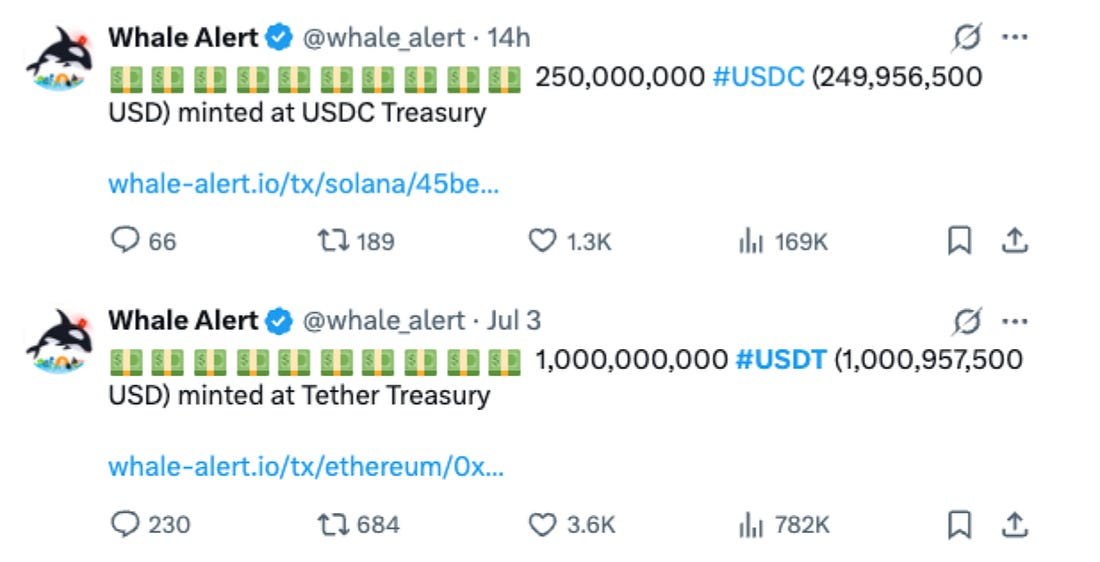 One positive sign remains the USDT premium, which indicates that crypto-native liquidity continues to grow. We also keep seeing automated alerts about freshly minted USDT and USDC, suggesting ongoing capital inflows.