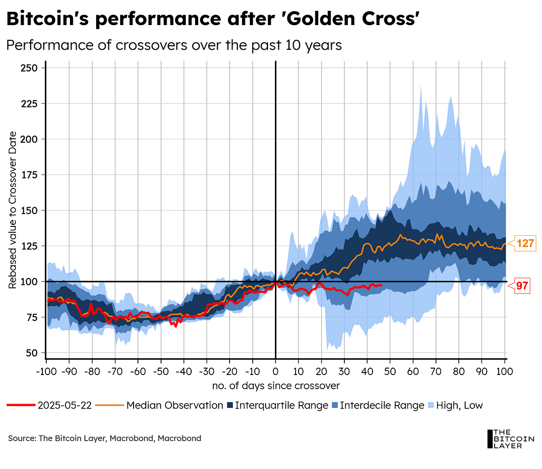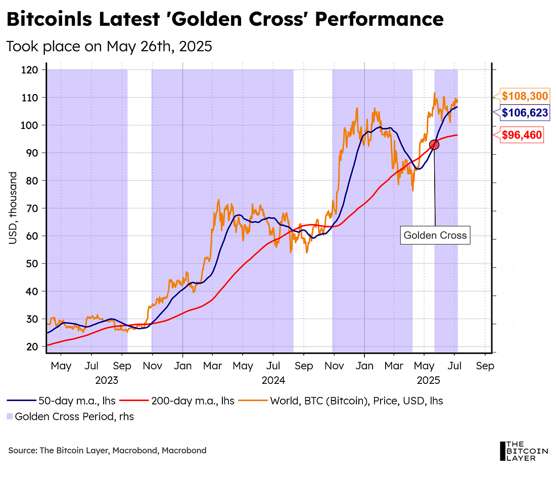 As you can see from the chart below, bitcoin’s 50-day m.a crossed above its 200-day m.a on May 22nd of this year.