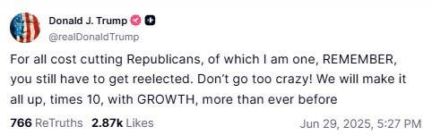 Dear Readers, It’s Thinking Time! This week we cover One Big Beautiful Bill and what it all means for the country. The Senate passed Trump’s megabill on Tuesday after an all-night session and an appearance from Vice President JD Vance to cast the tie-breaking vote. The bill will now go back to the House, with any changes requiring another Senate vote, as it races to meet Trump’s self-imposed July 4 deadline. TBL Thinks is our way to summarize the most important paywalled, longer reads relevant to global macroeconomics, helping you cut through the noise. With that in mind, please enjoy. Stop treating bitcoin like any other asset. It’s time to build a long-term strategy and declare your financial independence. Unchained’s Financial Freedom Bundle is designed to help serious bitcoin holders secure their future by taking control of their generational wealth. Request the bundle to get: