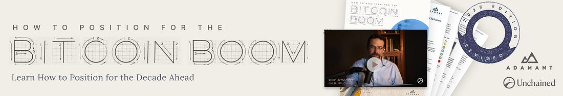 Over 10,000 investors downloaded the original report calling for $120k when bitcoin was just $27k. With that price level now achieved, Tuur is back with the 2025 edition refreshed for the bull run with new data and insights—including Adamant Research’s latest price outlook. The bull run is heating up—now is the time to take it seriously. You’ll also get exclusive access to an HD recording of Tuur Demeester’s new 30-minute video presentation, Charting Our Way Through Chaos, breaking down why this boom might be only just beginning—and what forces could push it to the next level. Read the first-ever mid-cycle report from Adamant Research: Thanks for reading The Bitcoin Layer — for access to all content, upgrade to paid! |