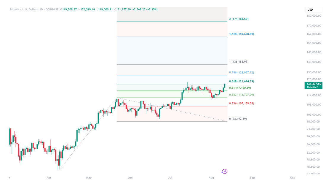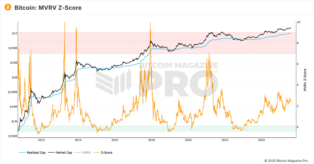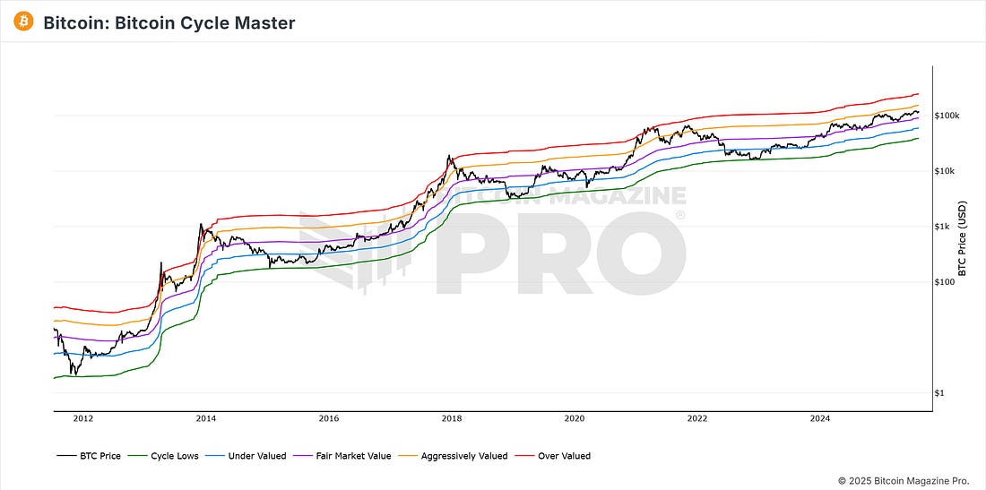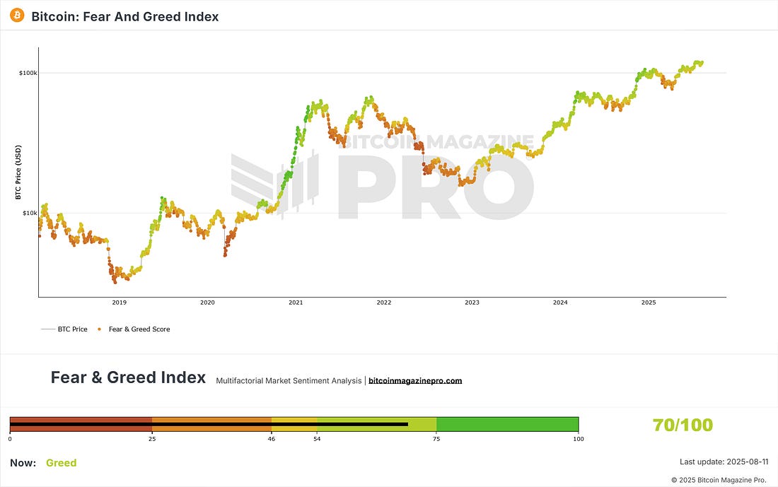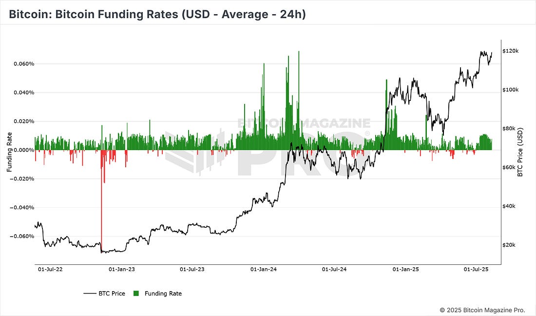 So Where Next After New All Time High?Bitcoin Soars Past $120K: Is the Market Overheating or Just Getting Started?News Headlines Price Action In last week’s newsletter BTC price had retraced to $112k and had just tested the previous high. We noted that there was a lot of panic in the market, but actually, we saw this as a strong support level. Sure enough, that level held as support and BTC has rebounded back up with a vengeance! Figure 1: BTC making a new all-time-high. BTC price has now surpassed the recent range zone and is climbing above $120,000. In doing so, it is breaking above the 0.618 fib level on the fib extension shown on the chart below. The next target is the 0.786 fib level at $127,000. Figure 2: Past month performance of BTC. The Big Story: Is The Market Too Hot? With BTC making new all-time highs, people are once again asking if the market is too hot and whether we may be nearing the end of the cycle. Let’s take a look at a handful of Bitcoin Magazine Pro metrics to get a quick sentiment check. The Fear & Greed Index is certainly not one of the most scientific metrics available, but it does give a broad sense of general market sentiment. Previous cycles have topped out only after a sustained period of Extreme Greed (dark green). Figure 3: Fear & Greed Index. So far, on this latest run up the Index has only reached Greed level, with a current score of 70. A much more definitive indicator than Fear & Greed, as it is based on actual behaviour. What are Funding Rates? Bitcoin funding rates are periodic payments exchanged between long and short traders in perpetual futures markets to keep the contract price in line with the spot price. A positive funding rate means longs pay shorts (indicating bullish sentiment), while a negative rate means shorts pay longs (indicating bearish sentiment). When traders are overly bullish (green bars on the charts) it has historically aligned with major highs for BTC. See March last year when the green bars spiked at the local high. Figure 4: Bitcoin Funding Rates. Right now, Funding Rates are less than 0.02% at a very stable level. This suggests that BTC can move higher without the need for overleveraged traders to be wiped out by any sharp price retracements. This is bullish. One of our favourite indicators at Bitcoin Magazine Pro, again because it is based on actual market participant behaviour. When the Z-score is very high, it suggests the market value is far above the realized value, often indicating overheated conditions near a cycle top. Figure 5: MVRV Z-Score. With a current score of just 2.5, this metric suggests that BTC could still move up a lot higher before this cycle is over. Historically, previous cycles have topped out once the Z-Score (orange line) moves above 6 towards the upper red zone. This tool combines multiple onchain metrics such as Coin Days Destroyed and Terminal Price into one single master metric. It is a useful shorthand way to visualise where BTC is in its cycle. Right now, BTC price is sitting right in between the Fair Market Value (purple line) and the Aggressively Valued (orange line). Figure 5: MVRV Z-Score. Previous cycles have only topped out after BTC price has reached the Over Valued (red) line, which is currently at $246,118. There is no guarantee that price will reach such levels this cycle, but it is still some way off even the Aggressively Valued (orange) line, which is at $152,861 and climbing. In summary, there is a lot of data to suggest that BTC still has a lot of potential to climb higher in the coming weeks and months. With both institutions and retail still coming on board, the future looks bright. You can dig into the data for yourself here at Bitcoin Magazine Pro. Speak again soon! Bitcoin Magazine Pro Team. Bitcoin Magazine ProFor more detailed Bitcoin analysis and to access advanced features like live charts, personalized indicator alerts, and in-depth industry reports, check out Bitcoin Magazine Pro. Make Smarter Decisions About Bitcoin. Join millions of investors who get clarity about Bitcoin using data analytics you can't get anywhere else. We don't just provide data for data's sake, we provide the metrics and tools that really matter. So you get to supercharge your insights, not your workload. Take the next step in your Bitcoin investing journey: