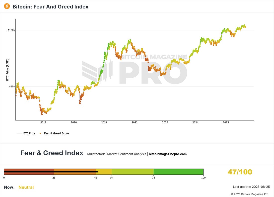 News Headlines Price Action BTC price action has continued to be lacklustre over the past couple of weeks. Despite a brief pump after the Fed announced potential near-future cuts in U.S. interest rates, BTC price has continued to trend lower. Currently at $112,000, BTC price is holding just above the first significant support level of the 128-day moving average, which is currently at $108,500. Figure 1: BTC trending down. The level of uncertainty in the market is shown by the current Neutral score in the Fear & Greed Index. Somewhat surprising at this stage of the bull market, but we believe the market’s uncertainty is coming from the gradual trending down of recent price action. Figure 2: Neutral score, Fear & Greed Index. The current sentiment in the Fear & Greed Index may also reflect some impatience among market participants. BTC is up just 4.5% over the past three months. That increase is likely to be significantly less than many market participants were expecting for this stage of the bull cycle. Figure 3: Past 3-month performance of BTC. The Big Story: Will Falling Rates Spark Bitcoin’s Next Leg Up? Last week, Jerome Powell signalled that U.S. interest rates may need to come down sooner than expected. Markets are now pricing in two cuts before year-end. For risk assets like Bitcoin, this shift is critical. Lower rates reduce the appeal of holding cash and bonds, and they’ve historically fueled capital flows into harder assets. We saw this after the Covid crash, where low rates helped to fuel the 2021 bull run. Figure 4: U.S. Interest Rates. At the same time, global liquidity continues to rise. Central banks, facing fragile economies and mounting debt burdens, are unlikely to stop printing. (See chart below.) More liquidity in the system has consistently been bullish for Bitcoin, which stands apart as a hard asset with a fixed supply. Figure 5: Global Liquidity. Meanwhile, government debt is climbing at an unsustainable pace. The higher the debt, the greater the incentive for policymakers to inflate it away. That reality pushes more investors to seek protection in assets like Bitcoin, where the rules can’t be changed at the whim of a central bank. Figure 6: U.S. Federal Debt continues to rise. Taken together, the medium-term outlook is powerful: falling U.S. rates, expanding global liquidity, and spiralling government debt. Each of these forces points in the same direction toward rising demand for Bitcoin. As these macro tailwinds gather, they could very well fuel the next wave of the bull cycle. Subscribers to Bitcoin Magazine Pro platform can access all of these charts along with in-depth analysis for investing. You can subscribe here. Speak again soon. Bitcoin Magazine Pro Team. Bitcoin Magazine ProFor more detailed Bitcoin analysis and to access advanced features like live charts, personalized indicator alerts, and in-depth industry reports, check out Bitcoin Magazine Pro. Make Smarter Decisions About Bitcoin. Join millions of investors who get clarity about Bitcoin using data analytics you can't get anywhere else. We don't just provide data for data's sake, we provide the metrics and tools that really matter. So you get to supercharge your insights, not your workload. Take the next step in your Bitcoin investing journey: