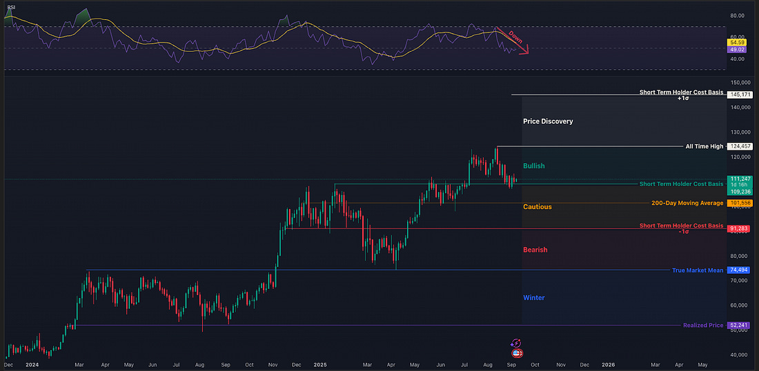 Stay long, stay liquid. Use code “Nik” for 0.5% off interest rate for 2 years. OverviewThe current price setup is very clear. There’s so much confluence at each level. To dive into the details of each metric would take an entire article, so this time we’ll stay more on the surface. In previous reports and letters, we’ve already gone deeper into many of these metrics. The 3-Day RSI is below its moving average, and the moving average is trending down. That’s a trend we’ve learned to respect and shouldn’t ignore too easily. The overview doesn’t cover every metric, because that would be too crowded. But for example, the Vaulted Price aligns with the top of the ‘Price Discovery’ zone. It also lines up with expectations in the option market, which we’ll touch on later. The bottom of the ‘Cautious’ zone also matches the dollar value of the mean of the MVRV ratio, which can be seen as the ‘Market Divider’ between bull and bear conditions. And again, it aligns with end-of-year expectations in the option market. All of this lines up almost exactly with the technical levels on the candlestick chart. It’s almost stunning (for analysts). Volume ProfileIf we take a look at the volume profile of the range bitcoin has been trading in since the election of Donald Trump, we see that the most traded volume is around $96,500. This is called the Point of Control. A normal volume chart shows the daily trading volume based on time. A volume profile is based on price. It shows at which price levels the most volume has occurred. You could compare it to a cost basis or an average of the past 10 months. Another theory around volume profiles is that they often resemble a normal distribution, and that gaps in the profile are likely to get filled over time... Subscribe to The Bitcoin Layer to unlock the rest.Become a paying subscriber of The Bitcoin Layer to get access to this post and other subscriber-only content. A subscription gets you: