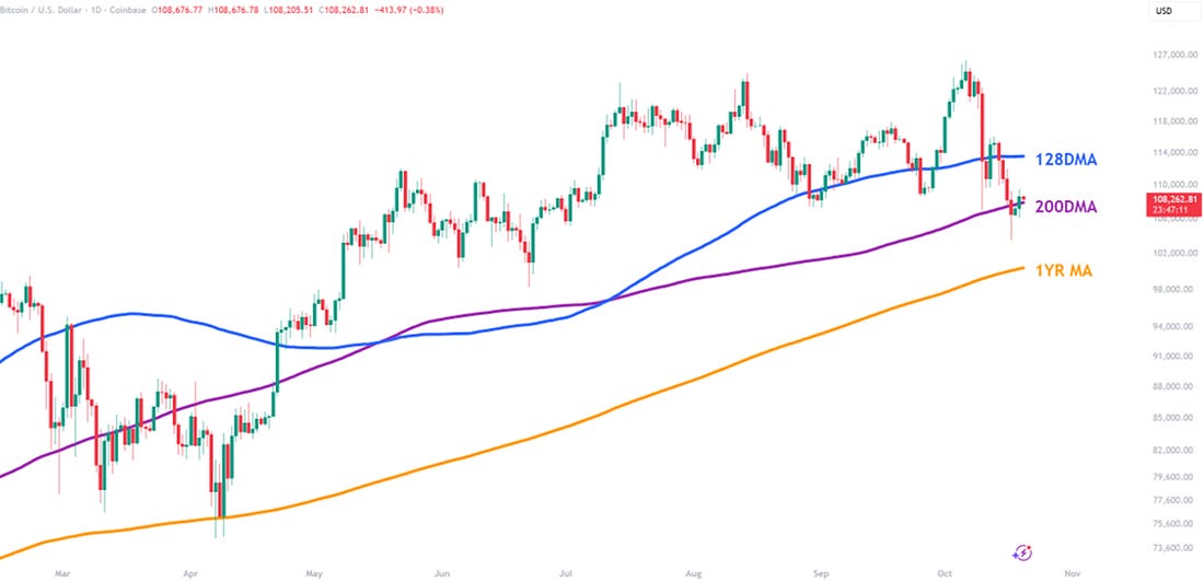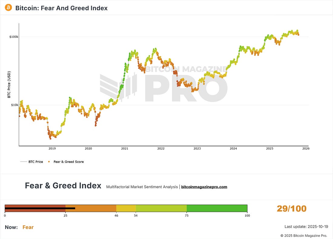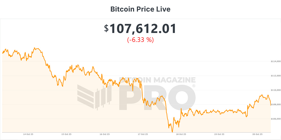 What’s HappeningPrice ActionBTC price action has continued to spook the market over the past week. The downward movement has seen BTC tumble -6.33%. Figure 1: BTC price has dropped down for a second week in a row. From a technical analysis perspective, BTC has moved from our first key moving average, the 128-day moving average, down to our second, the 200-day moving average. Figure 2: BTC now at the 200-day moving average. After crashing through the 200-day moving average at the end of last week, BTC has now reclaimed it, which is an encouraging sign but BTC will now need to hold that level into this week and then reclaim the 128-day moving average (now at $113,500) for significant confidence to return. The Big Story: Local Lows Or Bigger DowntrendNow that Bitcoin’s price has dropped back to its 200-day moving average, traders are asking: is this the start of a deeper correction, or just another local low before the next leg higher? Fear has returned to the market. Funding rates across major derivatives exchanges have turned negative, meaning traders are paying to stay short. In a bull market, this can often be a contrarian signal when sentiment becomes too bearish; it tends to mark the point of exhaustion before a reversal. Notably, even Binance, the most retail-driven exchange, has now seen sustained negative funding, something rarely seen during bullish phases. Figure 3: Binance Funding Rates consistently negative for more than a week. At the same time, the Fear & Greed Index has been back in fear territory for two straight weeks, showing widespread uncertainty just as many expected the next bullish phase to begin. Figure 4: Fear & Greed Index in Fear. While it’s possible that Bitcoin is entering a broader bearish trend, BM Pro data suggests that the greater possibility continues to be a bullish correction. We’ve noticed that three or more consecutive days of outflows from the IBIT Bitcoin ETF often mark capitulation areas where sentiment is overly fearful, right before price reverses higher. This pattern has repeated multiple times since the ETF launched. We have seen it happen again right now. While it’s a little early to have high confidence in this metric, it is certainly one to keep an eye on as we get more IBIT ETF data over time. Figure 5: IBIT Bitcoin ETF Inflows/Outflows Additionally, BM Pro subscribers have been receiving local-low alerts such as signals from the Active Address Sentiment Indicator, which shows price drops reaching extremes relative to on-chain activity. Historically, that has coincided with local lows, whether in bull or bear markets. Figure 6: Active Address Sentiment Indicator For now, keep an eye on the 200-day moving average. If BTC can continue to hold above it in the coming weeks, it would confirm renewed strength. Lose that level, and the next major support lies near the 1-year moving average, currently just above $100K. Now is the time to stay alert as markets like this often set the stage for the next big move. To check out more Bitcoin metrics like the ones in this newsletter and receive alerts for key Bitcoin charts so you stay ahead of the crowd, subscribe here. The Bitcoin Magazine Team. Bitcoin Magazine ProFor more detailed Bitcoin analysis and to access advanced features like live charts, personalized indicator alerts, and in-depth industry reports, check out Bitcoin Magazine Pro. Make Smarter Decisions About Bitcoin. Join millions of investors who get clarity about Bitcoin using data analytics you can’t get anywhere else. We don’t just provide data for data’s sake, we provide the metrics and tools that really matter. So you get to supercharge your insights, not your workload. Take the next step in your Bitcoin investing journey: