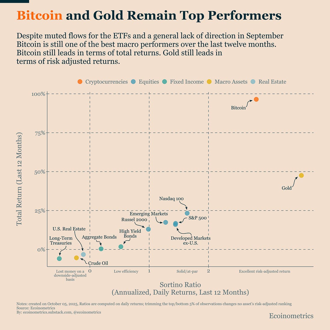 Strong Crypto Inflows, Bitcoin Still LeadsAlso Bitcoin and Gold Remain Top Performers in a Hard-Asset Cycle & The Federal Reserve Turns Less HawkishWelcome to Ecoinometrics’ Friday edition. Each week, we analyze the three most critical market signals impacting Bitcoin and macro assets, delivering institutional-grade insights through data-driven charts and analysis. Today we’ll cover: