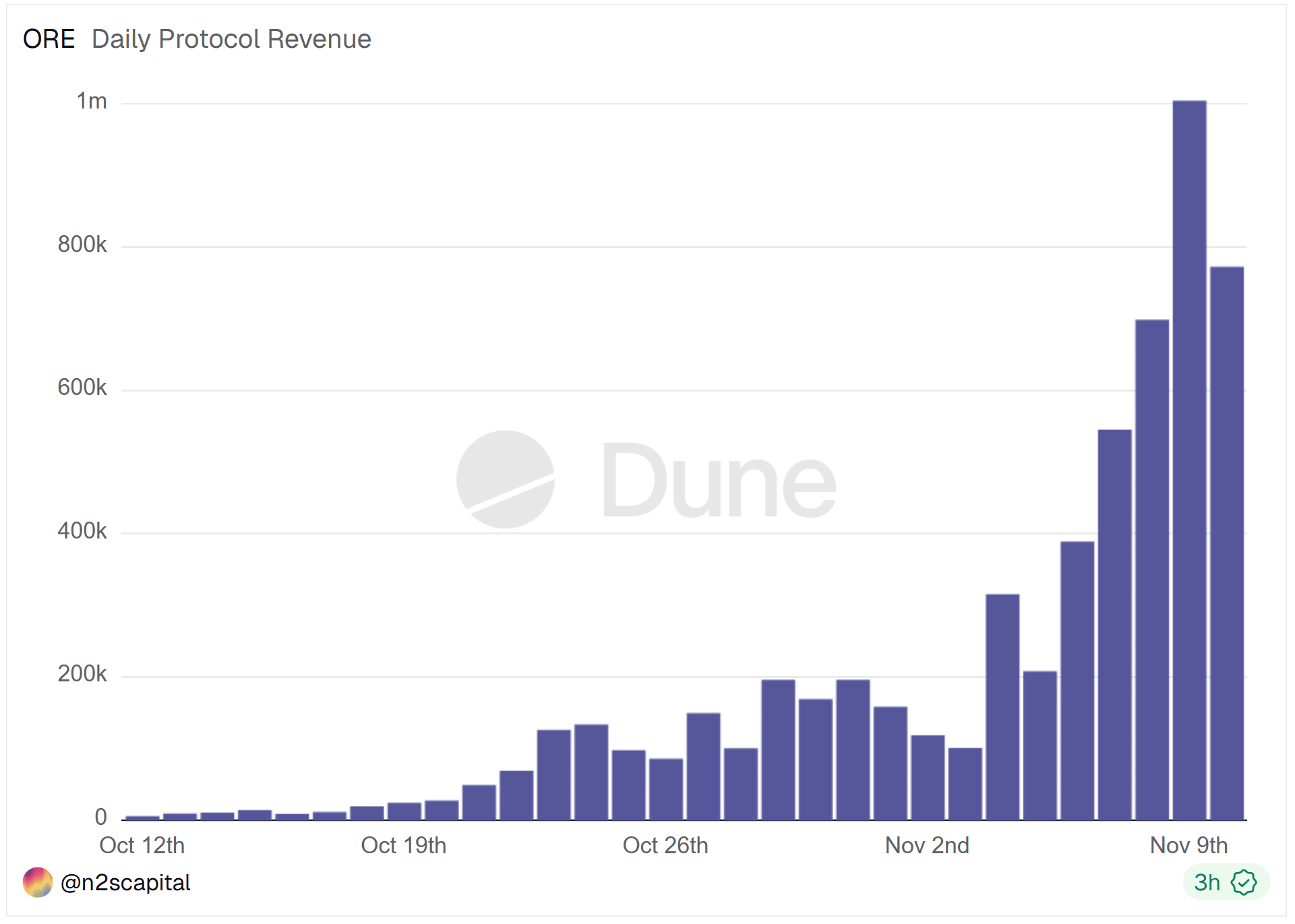 All of it had gone to buy back the $ORE. The token has been deflationary for the past several days. If we factor in degens trying to speculate and front-run the buyback, we'll understand why it was pumping.