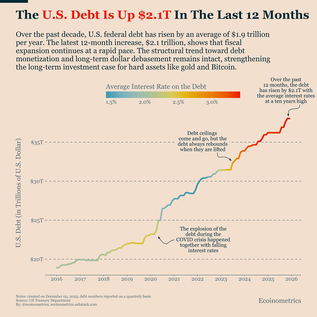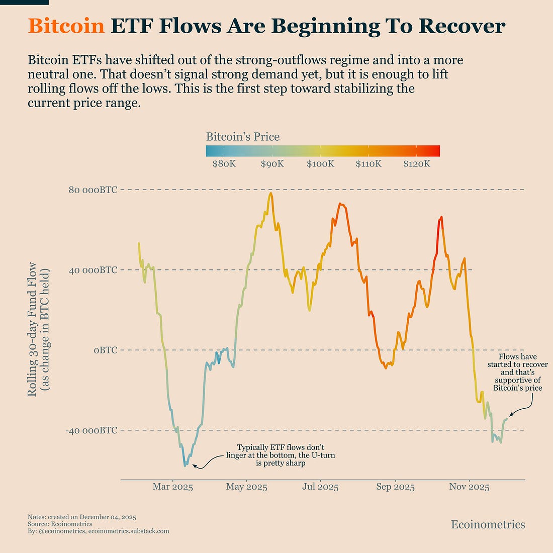 Bitcoin's Recovery Supported By A Turn In ETF FlowsAlso No Volatility For Bitcoin Despite A Turbulent Year & The U.S. Debt Isn't Slowing DownWelcome to Ecoinometrics’ Friday edition. Each week, we analyze the three most critical market signals impacting Bitcoin and macro assets, delivering institutional-grade insights through data-driven charts and analysis. Today we’ll cover: