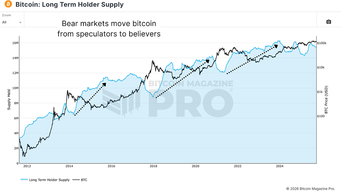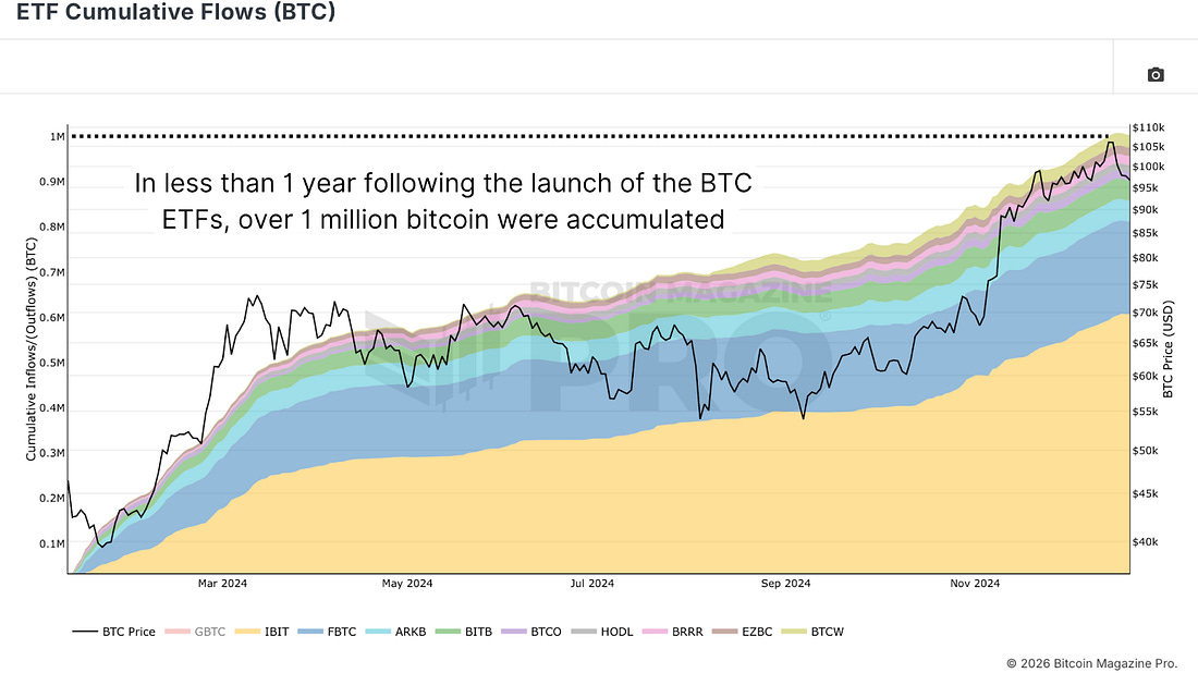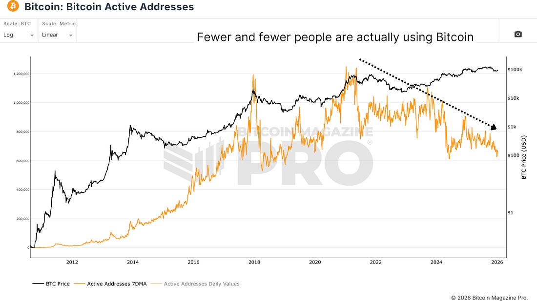 Bitcoin’s Institutional Adoption ParadoxETFs, Treasuries, and Regulation: Bitcoin's Path to Legitimacy — At What Cost?Bitcoin was created with a number of core principles. We do not need institutions. We do not need banks. We do not need to trust anyone except mathematics. Yet Bitcoin’s survival has become almost entirely dependent on the very institutions it was designed to escape. Billions of dollars are now held in ETFs and treasury company balance sheets. Governments are building strategic reserves, and banks are creating Bitcoin-based derivatives. This institutional adoption has provided Bitcoin with political protection and regulatory clarity necessary for survival, but at the cost of the privacy, decentralization, and self-sovereignty that defined Bitcoin’s original vision. Regulatory ResponsesBitcoin’s protocol worked perfectly from day one. The code was sound, and the mathematics were elegant. But Bitcoin failed at surviving hostile regulatory environments. In 2014, Mount Gox collapsed, not because Bitcoin’s protocol failed but because Bitcoin’s infrastructure failed. Mount Gox was a centralized exchange holding Bitcoin for customers, and when compromised, customers’ Bitcoin were gone. FTX followed, another catastrophe driven by centralized custody, fraud, and mismanagement. After each disaster, regulators stepped in. Custody standards were created, audits were required, and insurance was mandated. These regulations did not necessarily change Bitcoin, but they changed the infrastructure surrounding it. Figure 1: The catastrophic fall of FTX. Bitcoin’s idealistic vision of being your own bank turned out to be too hard for most people. The path forward required integrating with institutions, accepting regulation, and gaining legitimacy to scale globally. Bitcoin faced a fork in the road: either remain pure, small, hated by governments and used primarily by individuals, or integrate with institutions, accept regulation, and gain legitimacy to scale. Institutional AdoptionBitcoin probably could not have survived without institutional adoption. Bitcoin needed regulatory clarity to transition from darknet curiosity to mainstream asset. The question for purists is whether Bitcoin can serve wealthy institutional investors and unbanked populations simultaneously. El Salvador tried to make Bitcoin legal tender, but the experiment largely failed. When given a choice between Bitcoin and existing money supply, people chose their existing money supply. Figure 2: Since their inception, ETFs have accumulated over 1 million bitcoin. A huge portion of recent growth has come via institutions, hedge funds, and family offices recognizing Bitcoin as a legitimate asset class. Retail investor social interest is almost non-existent by comparison. This institutional dominance raises fundamental questions about whether Bitcoin can ever fulfill its original vision of banking the unbanked when those with capital are increasingly controlling its direction. Financial PrivacyThe financial privacy that Bitcoin was supposed to enable has pretty much all been lost. You used to be able to easily buy Bitcoin in person from other users until that got shut down. Exchanges demand rigorous identification verification and KYC protocols, and even Bitcoin ATMs now require government-issued ID checks. Bitcoin was supposed to replace banks and governments to bank the unbanked, but instead, we are trending towards Bitcoin becoming another asset within the existing system. Figure 3: The decline in Bitcoin Active Addresses. A considerable amount of Bitcoin is now held in institutional vaults and centralized custodians. You do not necessarily own your Bitcoin. You own the promise of Bitcoin from a centralized holder. We have unwillingly recreated the banking system we were trying to escape. We are once again trusting institutions with our capital. But institutional custody remains more convenient for the vast majority of users, so people choose convenience at the cost of compliance. Bear MarketsBull markets bring interest and excitement, and new money. They expand the base. But bear markets do something perhaps more important. Bear markets shift coins from those with low conviction to those with high conviction. People who bought Bitcoin as a get-rich-quick scheme simply give up. But people who believe in Bitcoin’s long-term vision hold or even accumulate further. Every bear market has strengthened Bitcoin’s conviction base. Every cycle has moved Bitcoin from speculators to believers. Figure 4: The cyclical nature and continued expansion of Long-Term Holder Supply. ConclusionCould this have been different? Potentially, if we had chosen to reject institutional adoption and kept Bitcoin small, private, and hostile to regulation, but that Bitcoin would unfortunately be a lot smaller, less secure, and more easily attacked by governments. The path Bitcoin took towards institutional legitimacy was probably the only path available because survival depended on it. Bitcoin must adapt to survive. Yet this adaptation comes with profound costs. Bitcoin, which was devised to resist central banks and fiat debasement, now almost relies on politicians and regulation. We are watching Federal rate cuts like Bitcoin depends on them. We have given up self-sovereignty and individualism in favor of corporate rule. The question remains whether we are relinquishing something truly fundamental to Bitcoin’s thesis just to suit those who make decisions that Bitcoin was created to counteract. For a more in-depth look into this topic, watch our most recent YouTube video here: Trojan Horse | The 131 Year Bitcoin #5 Matt Crosby Director of Research & Analytics Bitcoin Magazine ProFor more detailed Bitcoin analysis and to access advanced features like live charts, personalized indicator alerts, and in-depth industry reports, check out Bitcoin Magazine Pro. Make Smarter Decisions About Bitcoin. Join millions of investors who get clarity