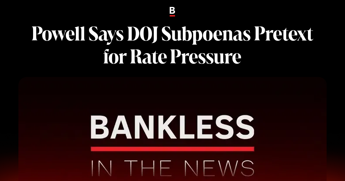 📸 Daily Market Snapshot: ETH and BTC rose to 8-week highs on Wednesday as crypto markets outpaced stocks despite negative early reactions to the draft Senate crypto market structure bill. | Prices as of 5pm ET | 24hr | 7d | | Crypto $3.29T | ↗ 1.3% | ↗ 6.5% | | BTC $97,006 | ↗ 1.7% | ↗ 6.6% | | ETH $3,349 | ↗ 0.6% | ↗ 6.3% | . . . ANALYSIS Jerome Powell & A Hard Money Moment We spend a lot of time thinking about hard money at Bankless, and this week’s dramatic escalation between Trump and the Fed has given us a lot to chew on. Powell's weekend video calling out Trump for pressuring him to cut rates and subsequently trying to saddle him with criminal charges is only the latest episode in a pattern of domestic dysfunction — one that includes the longest government shutdown in U.S. history — continuing to undermine trust in the U.S. and, as a result, the dollar's stability. Episodes like this latest one do little to inspire faith in the dollar and a lot to make hard money more attractive. The rub is that this domestic dysfunction accompanies a gangbusters U.S. stock market bolstered by tech exuberance that Trump is very much throwing all of the administration's weight behind. Do you bet on an America smashing the buy button – future institutional independence and trust be damned – or do you watch from the sidelines silently judging the money alongside a chorus of EU politicians. It doesn't seem like investors are reacting to a politicized Fed by selling off equities, but there has been some interesting action for gold and Bitcoin in the days that have followed, which merits a closer look. Analog Gold vs. Digital GoldSince Powell's video dropped Saturday — garnering over 87M impressions — gold surged nearly 3% to yet another all-time high above $4,600. Bitcoin's path doesn't map as cleanly to the weekend's events, but the asset has climbed 7% since Sunday though it's still 23% off its all-time high set in October. Gold and "digital gold" are both pumping but the investment thesis behind gold's euphoria is feeling quite different right now. Gold is crushing it, and behaving like an asset that has a clear picture of its own value. Central bank demand remains strong (as of the latest November report by the World Gold Council), with the pace increasing during the final months of last year. Overall, the buying looks structural, not narrative-driven. In my piece last October, I mentioned how gold was increasingly replacing U.S. Treasuries as the "riskless" asset in global portfolios. At the time, holdings of the two assets by central banks were already reaching parity, and as more central banks rotate reserves into gold to hedge against dollar dominance, demand becomes increasingly positively reinforced. Ongoing tensions between the U.S. and major powers like China, not to mention the recent military action in Venezuela and whatever's going on with Greenland, coupled with domestic dysfunction in Washington, have created an environment where gold thrives. It doesn't carry counterparty risk. It can't be weaponized through sanctions or devalued by central bank decisions. Gold's thesis — hedge against geopolitical instability, reserve diversification away from USD — is being confirmed by the very institutions whose job it is to manage systemic risk. There's no adoption narrative required or administration needing to champion it. Gold rallies on instability regardless of who's causing it. Bitcoin looks pretty different. The administration that's done the most to advance Bitcoin's institutional story — ETF approvals, regulatory clarity, strategic reserve rhetoric — is also the source of the instability that should, in theory, benefit hard money assets. Gold remains firmly independent of any particular regime. Bitcoin — despite being heralded as a sovereign, digitally-native store of value — seems quite dependent on the current one. That puts it fundamentally at odds with itself. What makes this even stranger is that Bitcoin has every catalyst it could ask for right now. The Fed is cutting rates. Just two weeks ago, the Fed started QE, growing its balance sheet by $40B per month. Inflation has dropped below 2% for the first time in five years. M2 global money supply is growing 10% per year — as fast as the mid-2020 at the peak of COVID. These are major supports for liquidity and Bitcoin. The asset has no excuse not to be showing outperformance in this environment. Yet it isn't. And the data suggests this confusion is registering with holders. Per Capriole's recent market outlook, long-term holders are selling 0.07% of BTC's market cap per day — well above the ~0.02% baseline needed for a rally to materialize — with institutions being net sellers as well. That's not what you see when an asset's thesis is being validated. That's what you see when confidence is fracturing.  “OG Whales Dumping” chat from Capriole, data delayed by three weeks for public feed To be fair, given the outlandish, life-changing returns many of these holders have likely received, this selling could simply be profit-taking. But on the surface, the believers in Bitcoin as sovereign, independent money appear to be exiting. The appreciation now depends on institutional flows that aren't flowing. Background concerns around quantum computing vulnerabilities add another layer of uncertainty — one gold doesn't share. To be clear, while I'm framing this around Powell's speech, Bitcoin and gold have been acting this way for over a year. Gold is trading like an independent asset. Bitcoin is trading like a dependent one — tied to the very political and institutional forces it was designed to circumvent. If Bitcoin is what its believers say it is — a hedge against fiscal irresponsibility, a sovereign store of value — this seems like a moment for it to prove that. Until it does, the analog original may very well keep outpacing its digital successor when the chaos hits. |