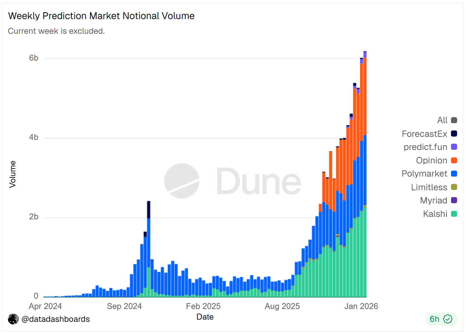 The above chart tracks the notional volume of Prediction Markets.