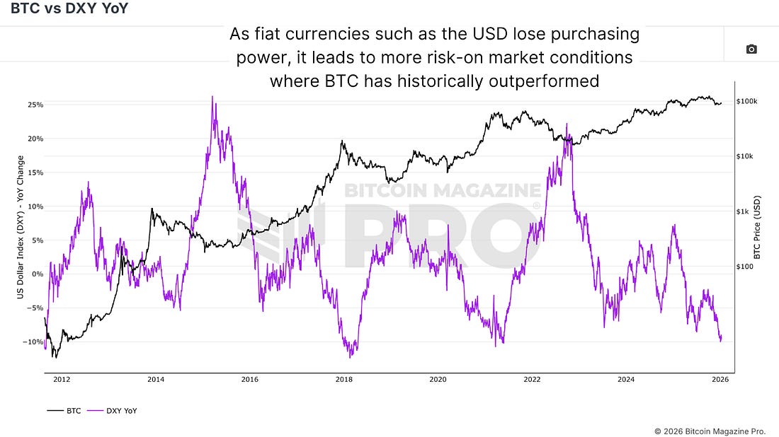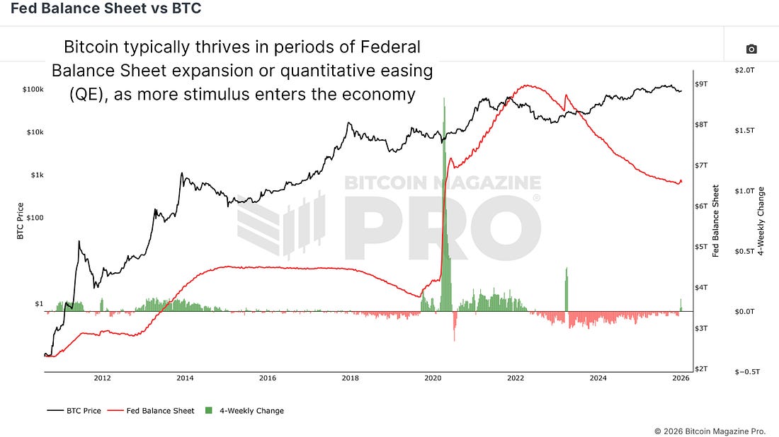 The External Factors Shaping BitcoinWhy Federal Reserve Policy, Global Money Supply, and ETF Flows Matter More Than You ThinkBitcoin’s price action cannot be fully understood through on-chain metrics and technical analysis alone. External macroeconomic factors exert a powerful influence on Bitcoin’s cyclical behavior. Understanding Bitcoin requires synthesizing these external factors with other key metrics to gain a comprehensive market perspective. Monetary PolicyBitcoin shows an incredibly strong positive correlation with the S&P 500, meaning the two typically move together. As equities rise, Bitcoin tends to rise. As equities fall, Bitcoin typically falls. This correlation suggests that understanding the factors influencing equity markets is essential for Bitcoin analysis. The Federal Reserve Balance Sheet provides critical insight into monetary conditions. During quantitative tightening periods when the balance sheet contracts and liquidity constraints limit speculative appetite, Bitcoin typically faces limited upside potential. Conversely, quantitative easing periods characterized by rapid balance sheet expansion, when abundant liquidity encourages risk-taking, typically coincide with bullish Bitcoin performance. Figure 1: The relationship between the Fed Reserve Balance Sheet and Bitcoin price. Global M2 Money SupplyThe Global M2 Money Supply represents total circulating money worldwide, including cash equivalents and short-term deposits. While many analysts track absolute M2 levels, examining the M2 year-on-year growth rate provides superior insight into Bitcoin price dynamics. The year-on-year perspective captures acceleration or deceleration of monetary expansion rather than absolute levels that naturally trend upward over decades. Figure 2: Analyzing the Global M2 Money Supply using a YoY growth rate illustrates its correlation to BTC. Global M2 year-on-year growth has coincided almost perfectly with Bitcoin’s expansion periods and brutal bear markets. This metric matters because Bitcoin is a global asset, not limited to US investors. Global monetary policy, not just US Federal Reserve policy, drives Bitcoin’s macroeconomic backdrop. Institutional FlowsThe launch of Bitcoin ETFs in recent years fundamentally changed Bitcoin’s capital flow dynamics by enabling institutional investors and large high-net-worth individuals to easily accumulate Bitcoin. ETF Cumulative Flows provide real-time visibility into institutional positioning. Periods of large ETF inflows typically coincide with Bitcoin price acceleration as institutions deploy significant capital. Periods of ETF outflows typically precede or coincide with Bitcoin price declines as institutions reduce exposure. Figure 3: The growth of Bitcoin ETFs. Dollar StrengthThe US Dollar Strength Index (DXY) measures the relative purchasing power of the US dollar compared to a basket of other fiat currencies. Examining DXY year-on-year changes provides superior insight than absolute levels. Bitcoin shows inverse correlation to the DXY. When the DXY weakens year-on-year, it signals favorable conditions for Bitcoin. A weakening dollar makes hard assets like Bitcoin more attractive as dollar holders seek to preserve purchasing power. But when the DXY strengthens year-on-year, it signals headwinds for Bitcoin. Figure 4: The inverse relationship between YoY US dollar strength and Bitcoin price. Treasury Company AccumulationTreasury companies have rapidly accumulated Bitcoin as a corporate strategy, with the top 20 Bitcoin treasury companies now holding around one million Bitcoin. Over 100 public treasury companies worldwide are actively adding Bitcoin to balance sheets. This represents a monumental supply reduction because accumulated Bitcoin typically remains illiquid for extended periods rather than actively traded. Figure 5: The Bitcoin Treasury Tracker shows the BTC accumulations of the top 10 public treasury companies. From a purely supply and demand economics perspective, these institutions removing one million Bitcoin from the liquid supply creates structural support. Any asset experiencing hundreds of billions of dollars of capital flowing into it represents genuine conviction and positive sentiment. ConclusionTruly understanding Bitcoin requires the simultaneous combination of on-chain metrics, technical analysis, and macroeconomic factors. Bitcoin’s maturation requires sophisticated analysis combining multiple perspectives. Bitcoin Magazine Pro site subscribers gain access to all the metrics discussed, CSV data downloads for custom analysis, and API access for direct network integration. Real-time alerts prevent constant chart monitoring while ensuring critical signals receive immediate attention. For a more in-depth look into this topic, watch our most recent YouTube video here: Bitcoin Masterclass #6 | Macro Charts Insights Matt Crosby Director of Research & Analytics Bitcoin Magazine ProFor more detailed Bitcoin analysis and to access advanced features like live charts, personalized indicator alerts, and in-depth industry reports, check out Bitcoin Magazine Pro. Make Smarter Decisions About Bitcoin. Join millions of investors who get clarity about Bitcoin using data analytics you can’t get anywhere else. We don’t just provide data for data’s sake, we provide the metrics and tools that really matter. So you get to supercharge your insights, not your workload. Take the next step in your Bitcoin investing journey: