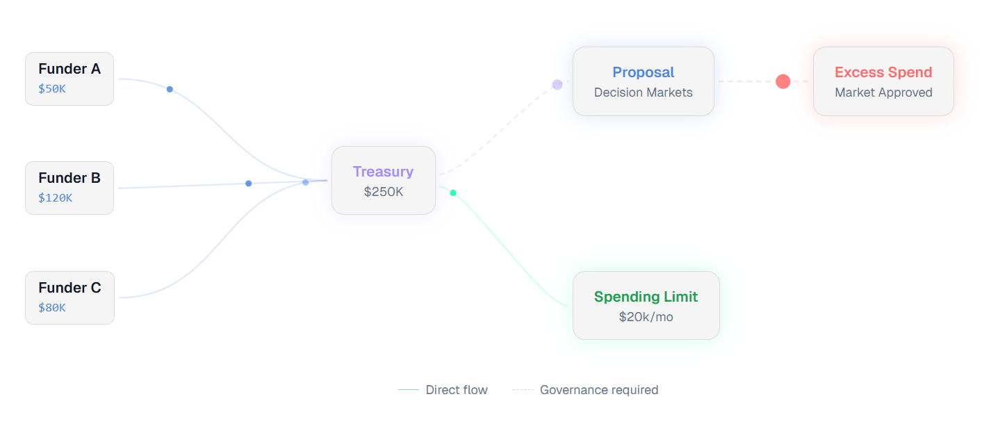 The fund doesn't immediately go to project teams; instead, it goes to audited smart contracts. These funds are then released to the team based on spending limits. If the team wants more funds or issues more tokens, they'll go through decision-markets. So, token holders won't be ruined by inflation either.